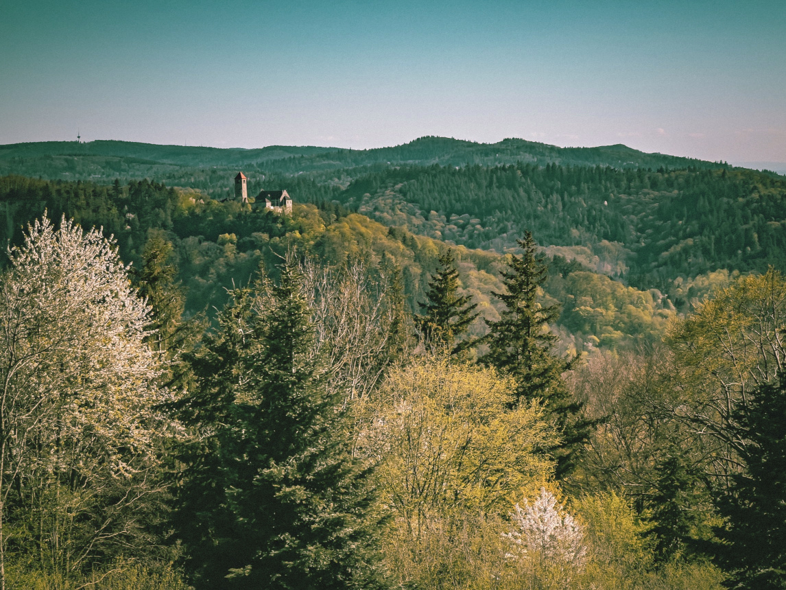 Der Burgensteig führt hier teilweise durch bewaldetes Gebiet, das nur wenig Aussichtsmöglichkeiten bietet. Dieses Gebiet wird bei diesem Streckenabschnitt abgekürzt. -